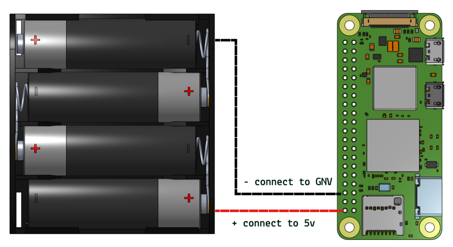 Connect the AA battery holder to the Raspberry Pi 2W.