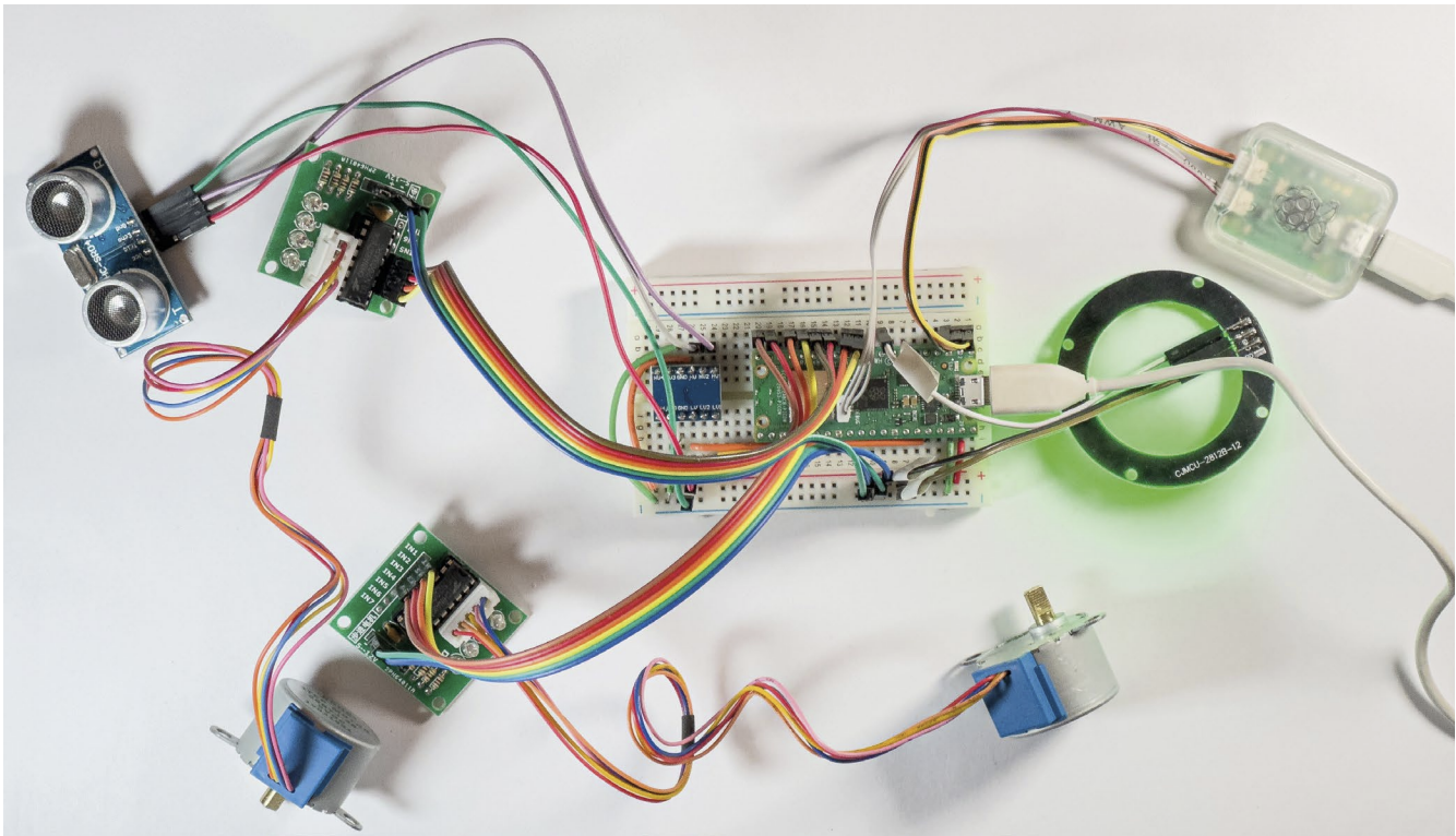 So he assembled a bunch of components needed for the build. There's a Raspberry Pi, a few sensors & motors.